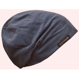 KOPFMUSS® - ungefütterte Cordmütze L jeansblau